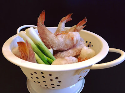 Remove the shells and digestive veins from shrimps. Save the shells for later use. Place shrimps, green onions, garlic powder, black pepper, sugar, and salt in a mini food chopper or a food processor, and process it until finely ground.